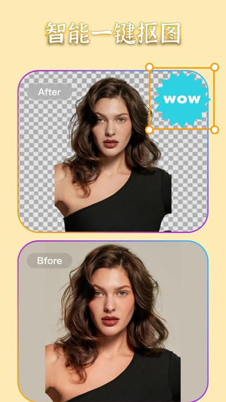 一键识别主体:智能算法 3 秒内精准识别照片中的人物、动物、商品等主体,自动分离主体与背景。