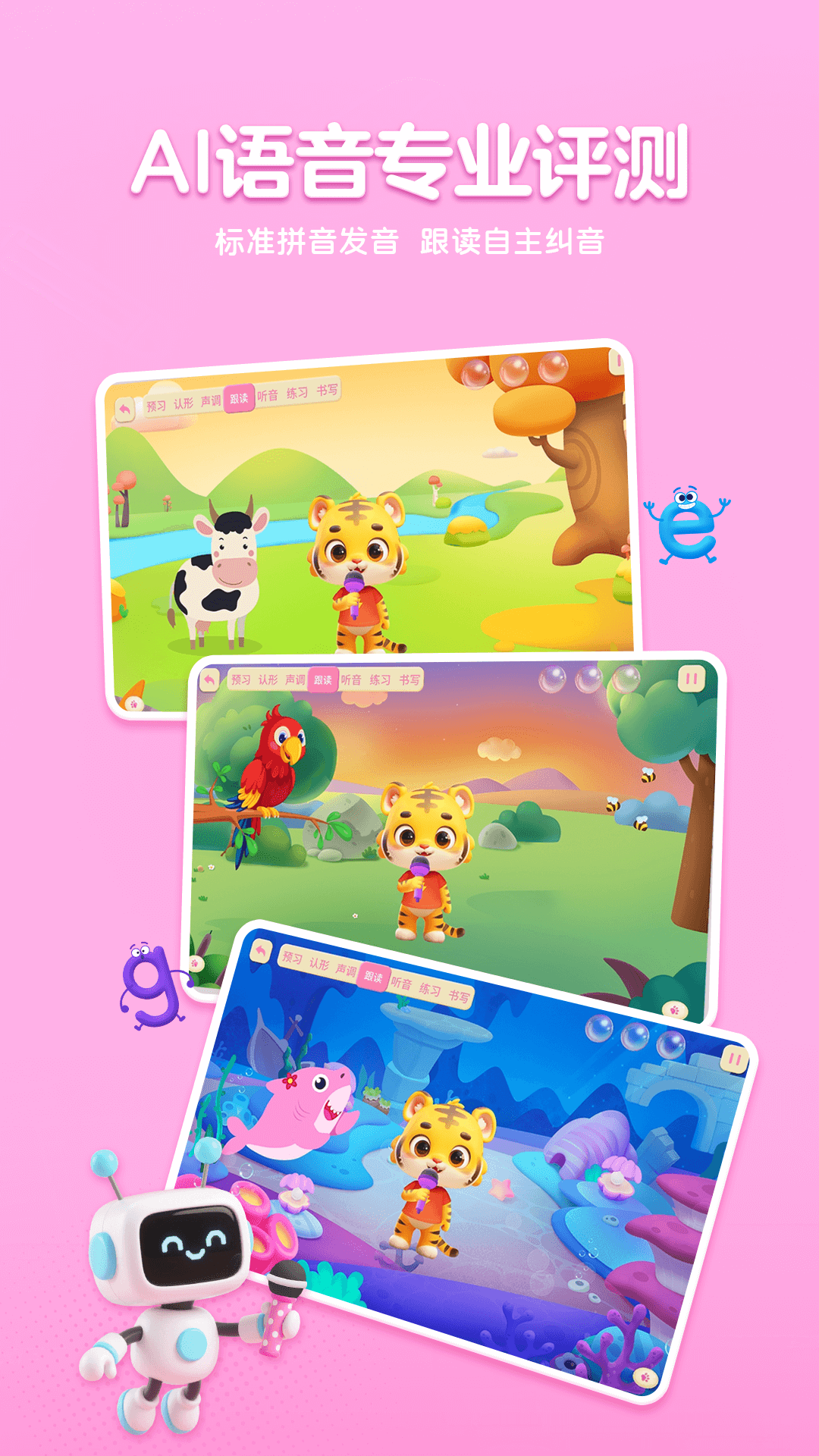 软件结合音频、动画和互动元素,让孩子通过听、说、看、做等多种方式,全面掌握拼音。