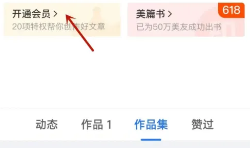首先进入美篇,我们来到个人主页界面,点击开通会员选项。