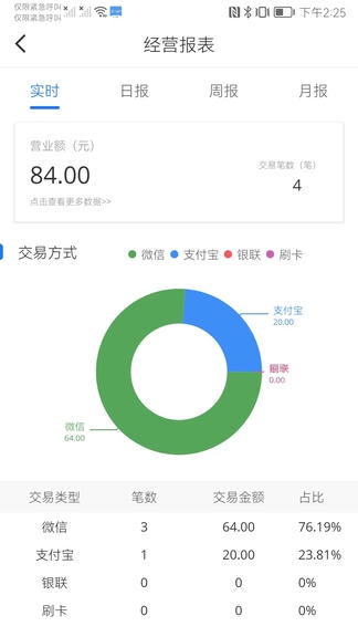 2、账单统计:可查看商户下的每一笔交易,并从门店和终端维度进行统计,随时随地了解各门店的经营状况。