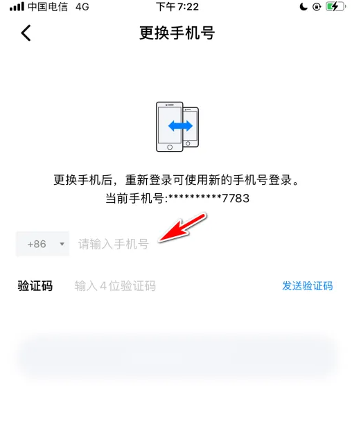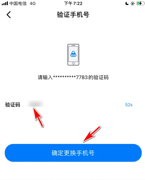 输入原手机号的短信验证码完成身份验证后,点击确定更换手机号的选项。