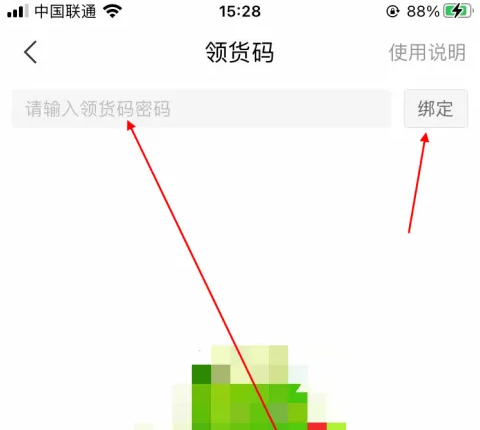 进入领货码界面后,请输入您的领货码密码,最后点击[绑定]。