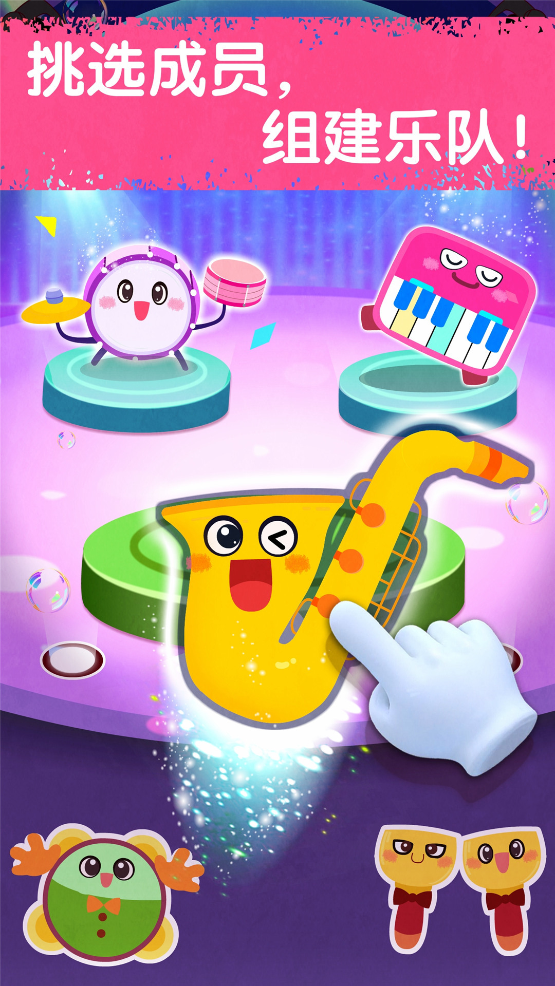宝宝音乐派对提供了多种乐器演奏互动,如钢琴、吉他和鼓等,让孩子在游戏中了解和学习音乐。