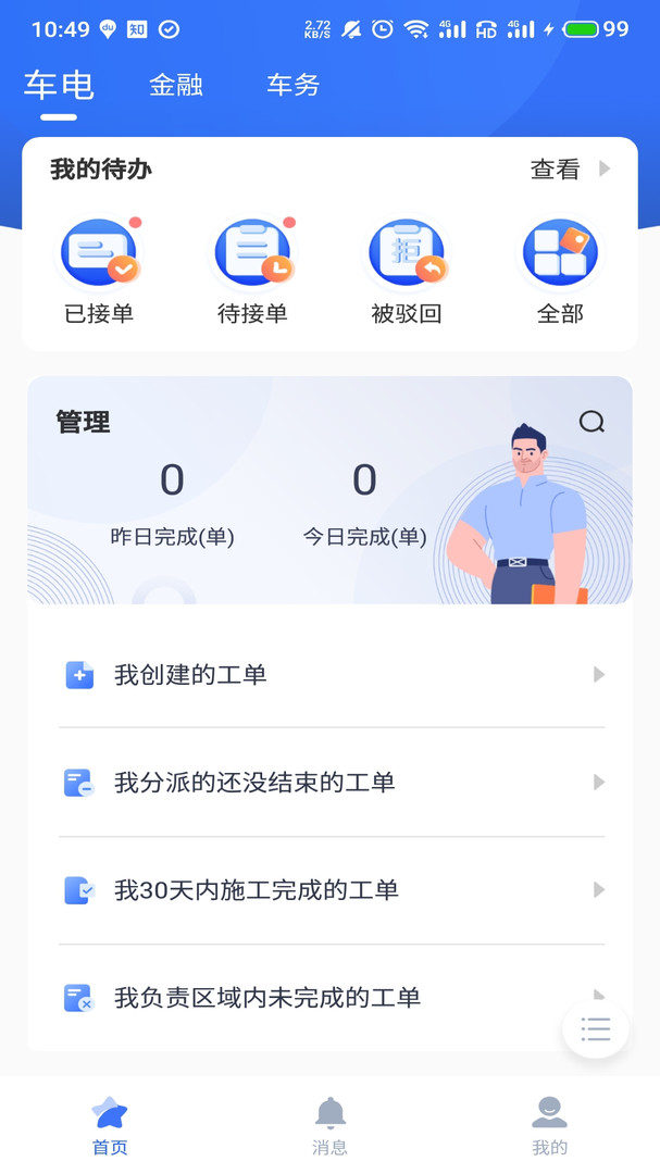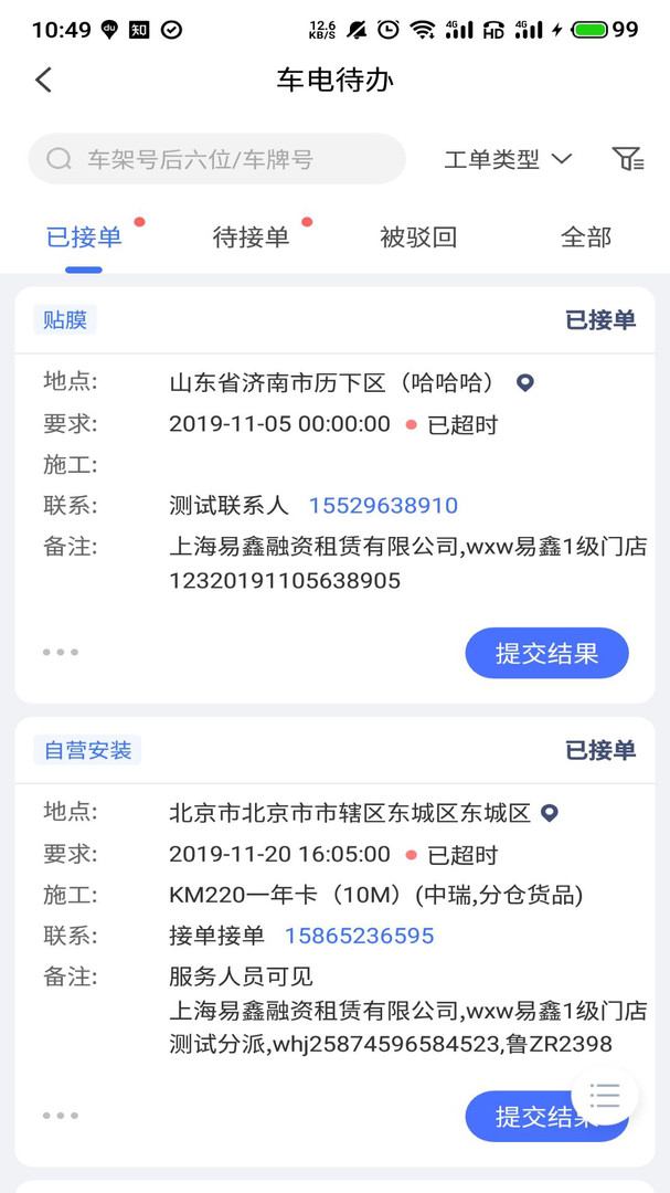 1、工单流转:工单分派、服务接单、提交处理结果、修改信息、进度查看