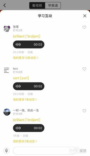 在【口语练习】部分,设置了跟读,用户可播放跟读录音,也可反复听原声,系统会实时对你的发音进行评价。在口语练习中跟读的语音会同步到该视频的评论中哦~~