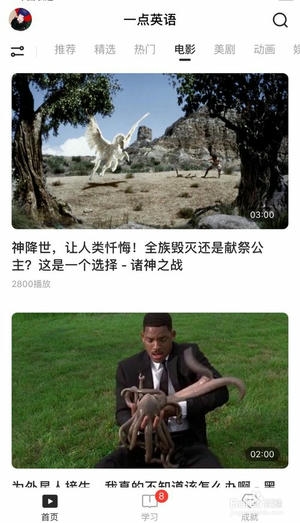• 海量美剧/电影/职场/公开课/纪录片等趣味英语视频自由学。