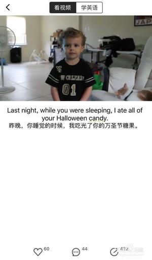点击你选择的学习视频,有三种字幕形式:中英字幕、英文字幕及无字幕,可以点击右上角的图标进行切换。如果你选择是有字幕形式,遇到不懂的单词,直接点击生词即可出现相关解析。如果不想看视频,可以点击视频上方的“学英语”,即可跳转到学习部分。