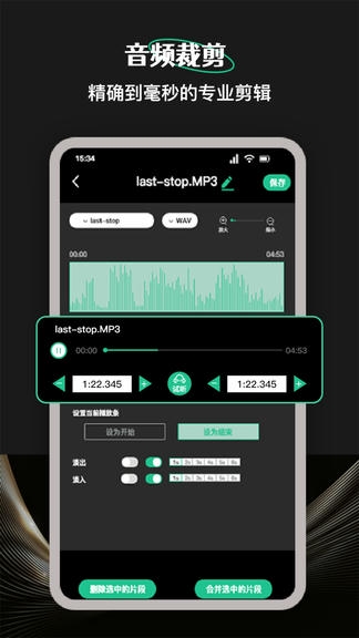 支持同一音乐剪切出多段音频,多种音频编辑模式 ,一键合成,简单出色,功能实用!!!