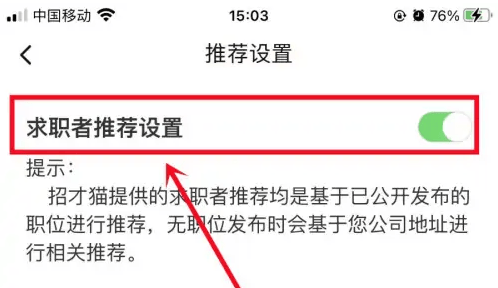 最后在页面,点击打开求职者推荐设置的按钮即可。