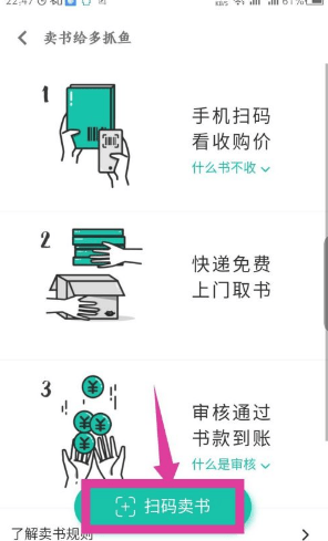 有闲置书籍要处理?在多抓鱼 app 内直接扫描图书 isbn 码,即时查看书籍收购价。下单后快递上门取书(到付),多抓鱼收到书并审核通过后,即刻打款,方便无负担。