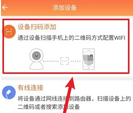 在添加设备界面,根据提示通过设备扫描手机上的二维码方式配置wifi。