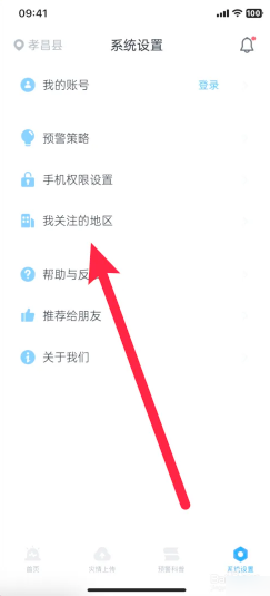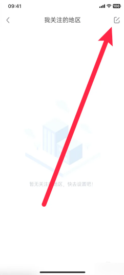 之后我关注的地区界面, 点击右上角的编辑图标。