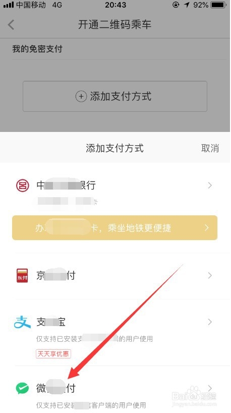 点击其中的扫码/出站 直接就会弹出来一个二维码,直接对着地铁上的机器就可以使用了,在这里就不截图了,因为涉及隐私不让截图,这也是非常安全的,这个是你选择的付款方式,一般他也是默认的只要你选择了