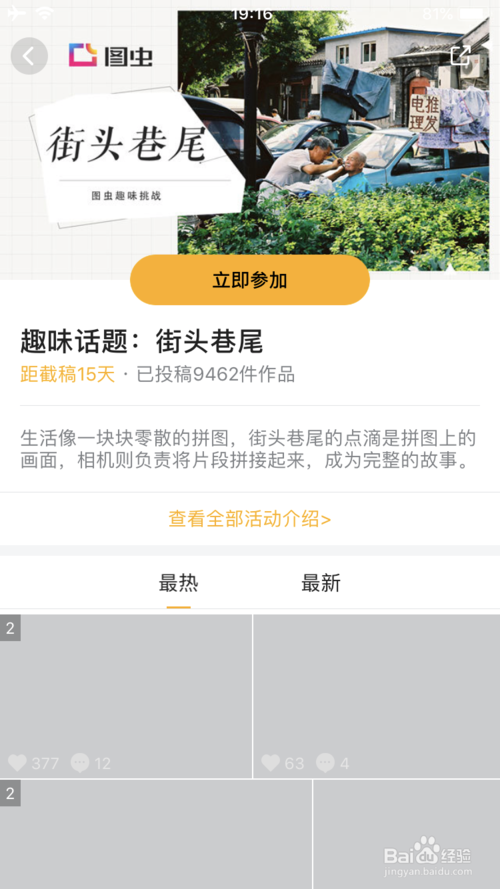 我随便点一个活动,给大家演示一下,不过前提是你得先有可以参与这个主题的照片。