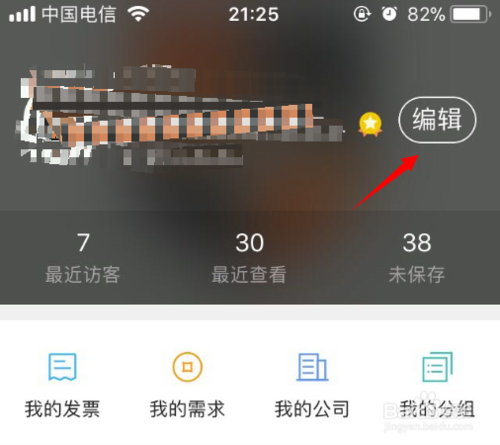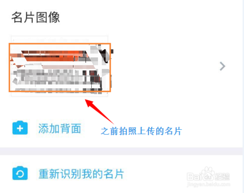如果我们是*注册使用,那么在开始编辑资料页会要求我们给自己的名片拍照上传,如果我们之前已经使用过该APP,那么就点击个人资料右侧的"编辑",接着在"我的资料"页面下方看到之前的名片图像...