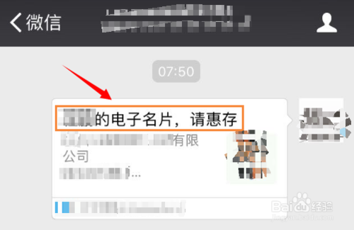 点击"发名片"以后会弹出微信朋友圈、微信好友、QQ以及短信等常用的几种网络聊天工具,我们以微信好友为例,选择某个好友发送以后效果如下...