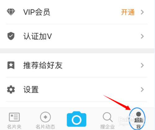 现在有很多种关于名片保存的APP,笔者以使用人数相对较多的名片全能王为例,安装到手机以后打开软件,在首页切换至"我"选项,如图;