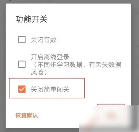 点击功能开关,勾选关闭简距蚂单闯关,然后点击确定即联册可关闭。兼离祝