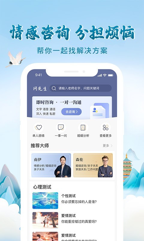 问先生是一个婚姻情感情感心理轻诉的综合性软件;