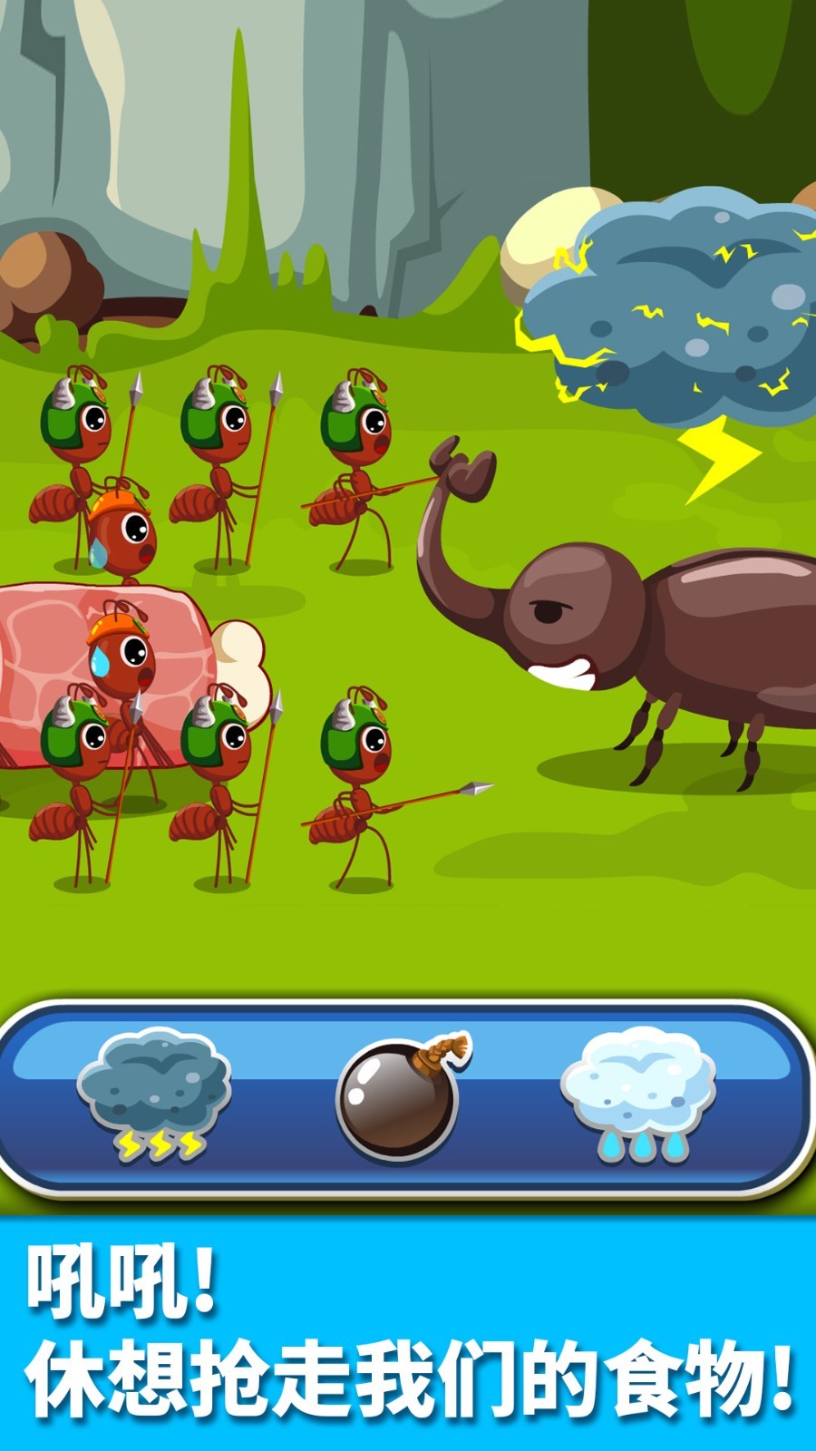 等等,还有在地面上辛勤觅食的工蚁们,他们遇到抢食物的坏家伙啦,快和兵蚁一起帮他们渡过难关吧!!!