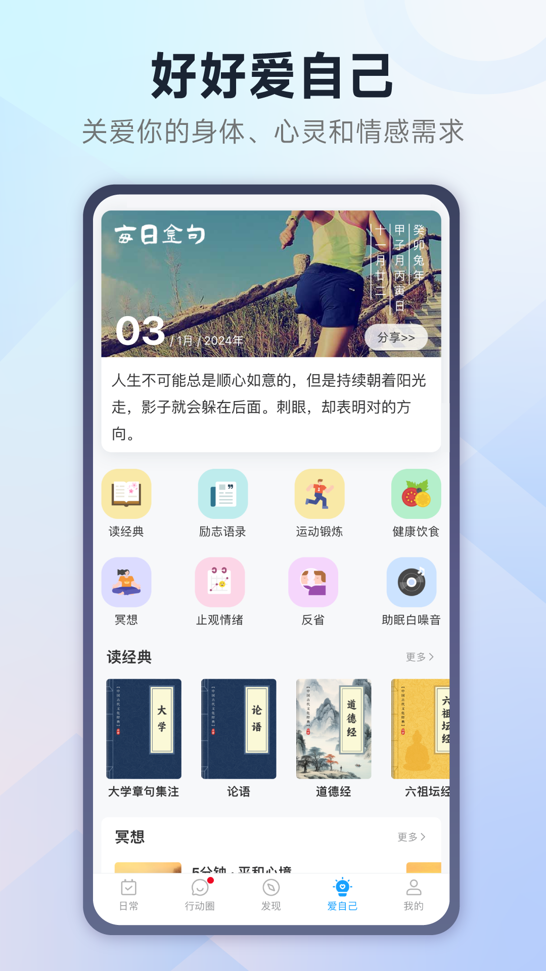 应用提供每日小任务,用户通过完成这些小行动来养成良好的生活习惯,逐步实现长期目标。
