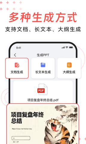 智能内容提取:自动分析文本内容,生成结构化大纲与逻辑清晰的 PPT 页面。