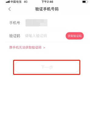 获取并输入验证码,点击【下一步】进入