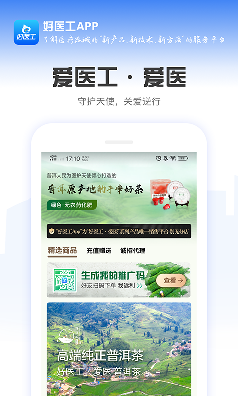 【好医工·爱医】新增爱医商城,普洱茶、咖啡隆重上市!分享给亲朋好友下单后并得到返利。