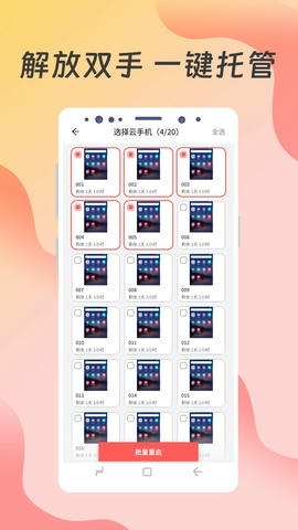 4.一键群控,一台手机就可以批量管理多台云手机,玩游戏。