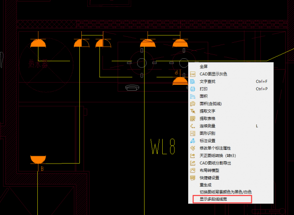 2、图纸上点右键,选择最后的“显示多段线线宽”命令。