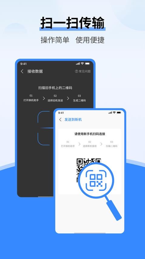 直接扫描二维码就能够快速的连接了,让新手机与旧手机都可以快速进行连接;