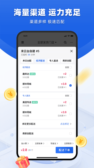 来云台商家APP是一款专为餐饮外卖、即时零售等自配送商家设计的移动端应用程序,旨在帮助商家提供众多订单渠道和海量运力;提高配送效率、降低运营成本、提升用户体验以及优化管理流程等多个方面;助于商家提升竞争力,还能为商家创造更多的商业机会和利润空间。