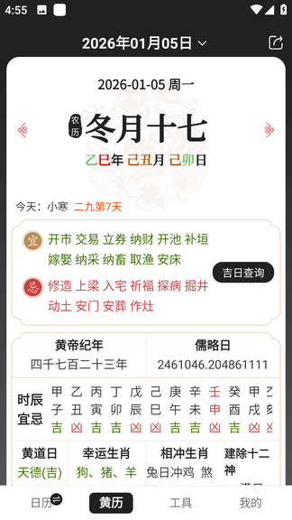 万年历黄道吉日结合黄历和万年历,集黄历、宜忌、天气、节气等一应俱全的生活助手,是你的专属时光记录器和生活运势宝典!