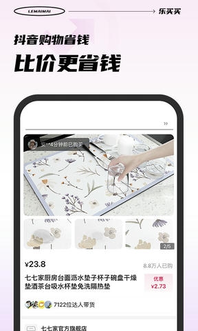 --抖音购物省钱拿返利APP-- ·实时更新全网*全最新的抖音优惠商品,想买的都能返利 · 热门主播直播间也能下单省钱,还有返利 --省钱攻略-- · 一键搜返利,比价更省钱 · 复制抖音口令/链接,来乐买买搜优惠