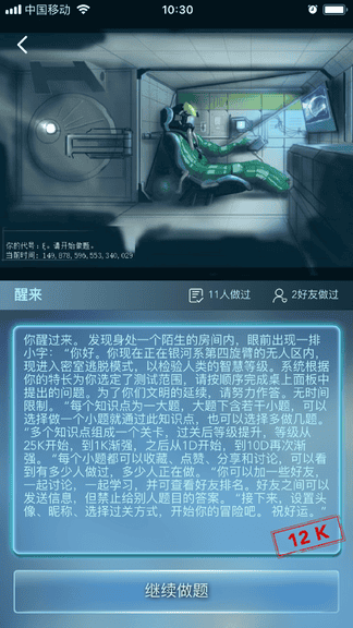 数学长征是一款 “数学闯关+数学手册+数学社交” 的综合性数学教育类App,应用以科幻类密室逃脱为背景,每个题目都包含相关知识和解题过程,做题后提升用户等级并推进故事向前发展。应用涵盖从小学到高中直至大学的知识点,难度逐渐增加。