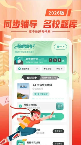 考神君高中地理app提供全面的地理知识库,包括详细的课程讲解、课后习题和实际案例分析,帮助学生深入理解地理概念。