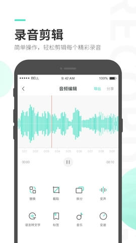 除了录音,应用还具备音频剪辑和编辑功能,用户可以轻松对录制的内容进行剪切、合并或添加标注,提升使用体验。
