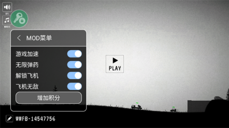 2、我们点击左上角的绿色钥匙按钮便可以调出相应的MOD菜单,可以实现无限弹药、全飞机解锁、游戏加速等一系列效果。