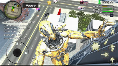 5、游戏中,玩家需要触摸屏幕来控制钢铁侠在城市的各个角落搜寻罪犯。