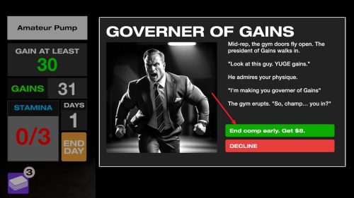健身模拟器游戏中文版是一款由steam移植来的卡牌构筑类游戏,融合Roguelike元素,在这里,你将化身ABSOLUTE UNIT,踏上通往Gains-Town的旅程,利用各种锻炼卡片塑造身材,争夺终极健美冠军的荣耀,通过收集和组合各类健身卡牌,制定最佳训练策略,逐步提升体能与肌肉力量,游戏设定幽默风趣,你需要在锻炼与恢复之间找到平衡,使用Arms卡增强二头肌,或专注于腿部训练,让自己成为纯粹的臀肌爱好者,游戏内提供了多种不同类型的健身卡牌,每张卡牌都对应特定的训练效果,适时使用休息或补充卡,让身体恢复巅峰状态,最大化成长收益,才能在挑战中不断突破极限,感兴趣的玩家可以下载体验。
