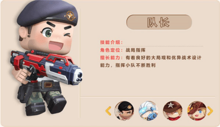 擅长能力:有着良好的大局观和优异战术设计能力,指挥小队不断胜利。