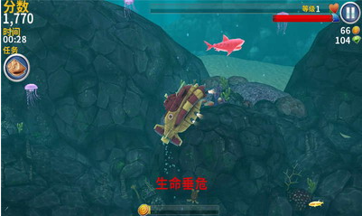 6、解毒素:在鲨鱼被水母等水下一些有毒的生物攻击后,自动解毒,避免快速掉血,是前期弱小鲨鱼必备啊。