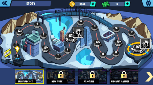 1、故事模式:通过引人入胜的故事情节探索世界,向所有恶棍宣战,击败他们并成为最强大的英雄。
