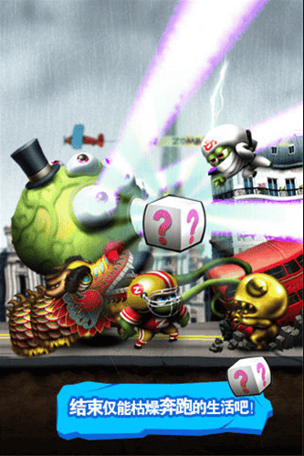 僵尸尖叫破解版这是一款画面非常幽默的横版跑酷游戏,游戏中你作为僵尸,遭到无法克制的饥饿感教唆,需要去侵犯那些意外的幸存者然后开心地吃掉他们的脑子。融入了其它跑酷游戏没有的新要素,比如路上你会碰到一些带问号的白色箱子,当你吃掉这些白色方块的时分,僵尸就会变身并且得到格外的效 果,种类相当多。例如:巨型僵尸会宣告镭射来消除全部障碍物跟骗局;UFO可以持续拷贝僵尸给玩家,不用吃人也可以增加僵尸数目;橄榄球队则是带着一往无 前的气势来撞飞全部车辆等等,非常喜感。忍者可以施展相当方便的二段跳跃;舞龙形态跳起落下的时候连续点击屏幕可以进行滑行等等。当你结束游戏后会有一个界面,上面有很多格子。当格子里装满了脑子之后,系统就会送你一张刮刮卡!刮开之后是道具,装饰或是钱。钱可以用来升级道具(就上一条的那些道具),也可以拿来升级技能X,例如开场两个僵尸,走两步送你四个人头X之类的咳啊当然还可以买装饰,不过装饰是每一局随机分配!