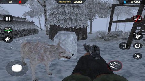3、你孤身一人在这片孤独的白雪覆盖的土地上,除了你那顺从的狼,准备好你的枪准备接近危险。