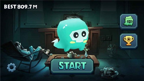 1、轻恐怖跑酷游戏,滑动手指,操控咕咚逃离古董店老板的追击。