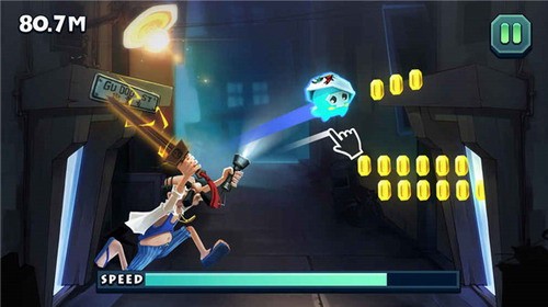 滑动手指,向前滑行,注意躲避古董店老板和爱犬的猛烈攻击!更要小心出其不意的机关!吃金币让咕咚跑的越快。咕咚跑的越远,奖励越多!