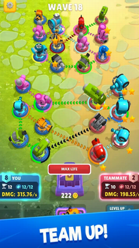 1、卡通风格的射击塔防游戏,游戏的难度不是太大,想玩的时候可以随时参与。