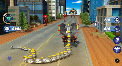 霸王蛇机器人无敌版是一款非常好玩的动作格斗游戏,这款游戏中有很多的机器人,而且每一个机器人都能变换不同的形态,大大提升了玩家的游戏体验。以灵活的变身能力去和各种强大的邪恶机器人战斗,并打败他们以拯救城市。你可以感受到超级真实的战斗环境,随时都能体验一把刺激的战斗比拼,激情澎湃的背景音乐,让人战斗起来热血沸腾,游戏上手简单,充满挑战性,喜欢这款游戏的玩家欢迎来下载。