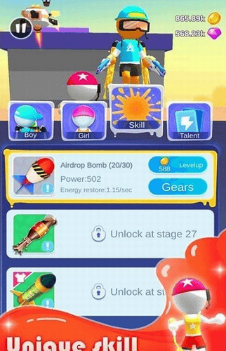 3、你要根据关卡的难度来选择相对应的武器装备,今天玩油漆球射击并绘制所有敌人。